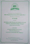 The event was presided by His Holiness As Seyyed Al Haj Haris Moulana. It was also graced by the presence of distinguished Ulamas, Members of the Parliament and a large number of Mureeds
